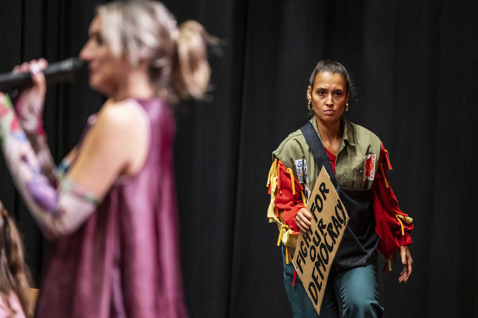 Het publiek hoorde en voelde een statement dat niet genegeerd kan worden: een indringende, urgente en bovenal hoopvolle oproep om de democratische waarden vrijheid, gelijkwaardigheid en solidariteit actief te beschermen. Een voorstelling die schuurde, raakte en tegelijkertijd een uitnodiging was: kijk niet weg, doe mee.
